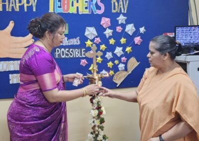 A ‘Guru’ is always held with highest regard in our country and the celebration of ‘Teachers Day’ therefore, is looked forward to by all students when they honour their teachers on 5th September, a day dedicated specially to them. This year too, the students left no stone unturned to make this day a memorable one for their gurus. Tr. Monisha Khan and Tr. Candida Pereira celebrated 25 years of dedicated service in this institution. Sr. Principal felicitated them at the morning assembly. It was a matter of pride for the institution as well as the teachers.